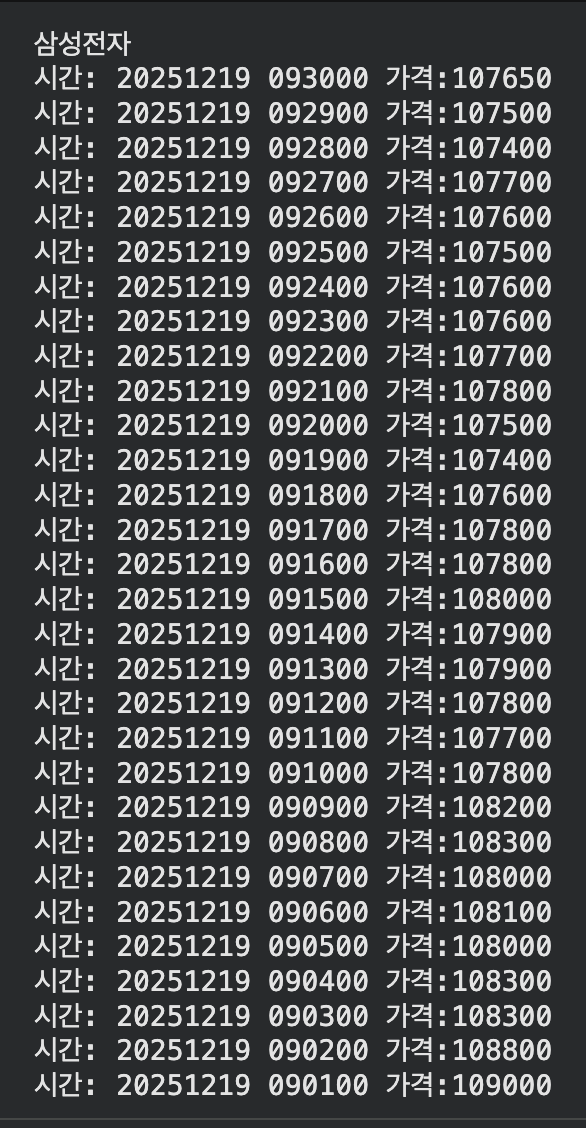 print(f"시간: {item['stck_bsop_date']} {item['stck_cntg_hour']} 가격:{item['stck_prpr']}")
